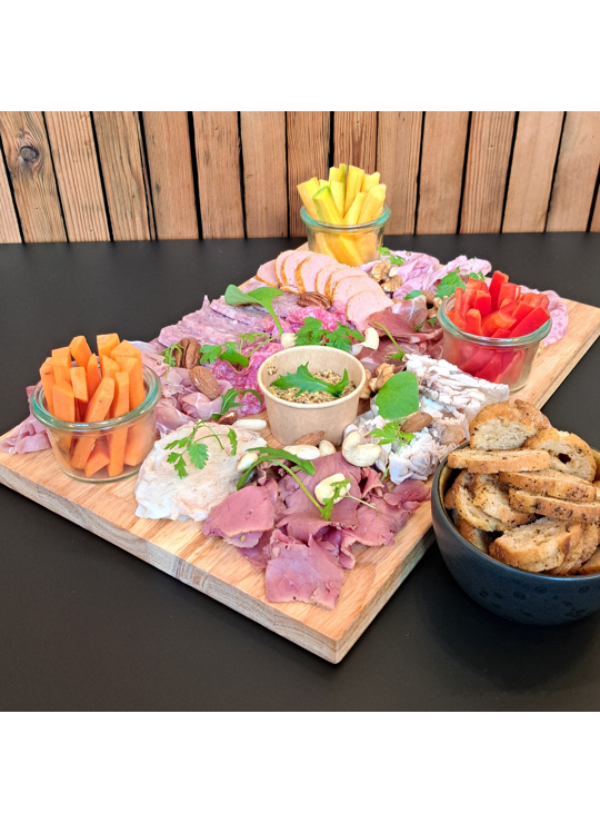 De plank bevat voldoende als apero of hapjes voor 4 à 6 personen.