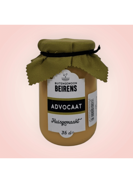 Een ambachtelijk en pure advocaat bereid op grootmoeders wijze. De advocaat wordt gemaakt zonder toevoeging van kleur- en smaakstoffen, maar door de pure alcohol waarmee hij bereid is bewaart hij toch zeker 2 jaar na openen. Je kunt hem zowel in als buiten de koelkast bewaren. In de koelkast krijgt de advocaat wel een vastere vorm dan erbuiten.