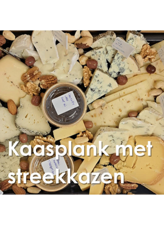 De plank bevat een fijne selectie van minimum 8 verschillende streekkazen en toppings.